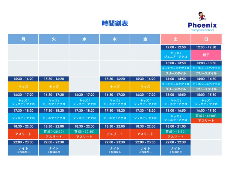 フェニックストランポリンスクールでは全てのクラスで、「日本スポーツ協会」及び「日本体操協会」公認の指導者が、一から丁寧にコーチングを行っています。
